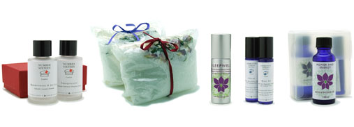 "Sleep well" pillow spray, Wake Up and Relax Pulsepoints, Jetlag kit, bath and shower gels, salt scrub sachets, body butter, lipbalms, wardrobe bags, organza sleep pillows, bath salts, hangover kit, shaving kit, and candle selection including triple wick.